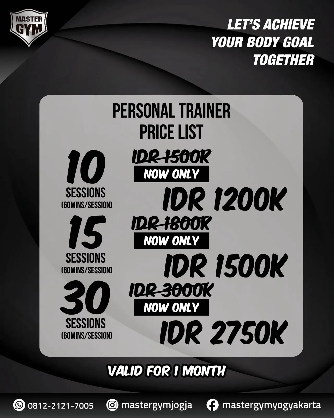 Master Gym Jogja adalah pusat kebugaran yang terletak di Yogyakarta, Indonesia. Biasanya, tempat ini menawarkan berbagai layanan kebugaran, termasuk peralatan gym, pelatihan pribadi, kelas kelompok, dan berbagai program latihan. Fasilitas ini dirancang untuk melayani individu dengan berbagai tingkat kebugaran, mulai dari pemula hingga atlet tingkat lanjut.